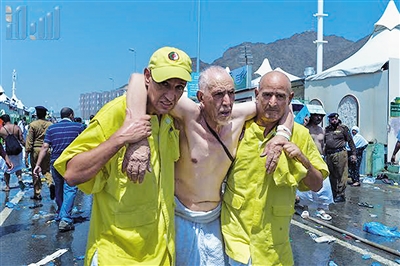 另一名朝觐者说,事故发生时,一些老年人最先摔倒,他们可能是因为中暑。