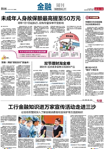 ■ 本报记者 陈怡执行了5年的未成年人人身保险死亡给付限额再一次进行调整。记者从海南保监局获悉,保监会明确对未成年人死亡保险金限额作出调整,从原来的最高限额10万元提高至20万元和50万元两个层面,这项政策将于2016年1月1日起执行。