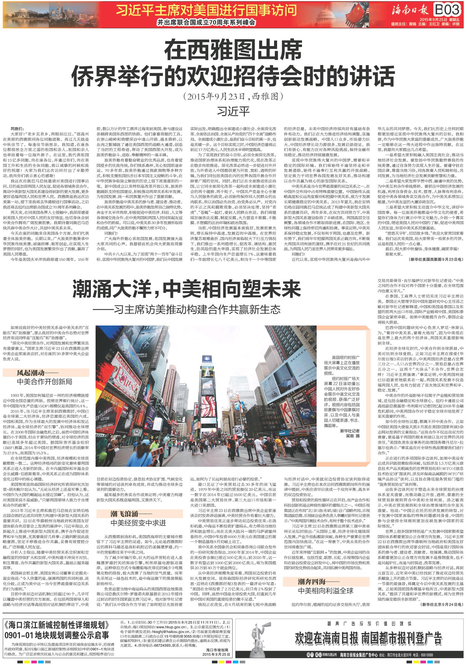 015 习近平主席对美国进行国事访问