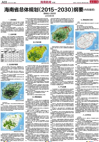 战略定位:本次规划战略定位可概括为:“一点、两区、三地”。“一点”即21世纪海上丝绸之路的战略支点;“两区”即全国生态文明建设示范区、全国改革创新试验区;“三地”即世界一流的海岛海洋休闲度假旅游目的地、国家热带特色产业基地、南海资源开发服务及海上救援基地。