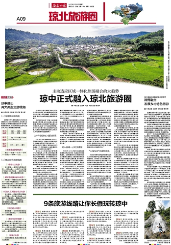 琼中县城——云湖农家乐——新寨农庄——南万温泉度假山庄——仕阶村摩崖文化主题村——五指山风景区——吊罗山乡吊罗山国家森林公园——南林岭自然保护区——长兴养生山庄——堑对湖滨度假山庄