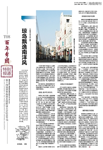20世纪初期至民国年间,海南南洋商人纷纷回乡建骑楼,吹起一股清新的南洋风。这一时期正是骑楼的全盛时期,沿海市镇商埠纷纷建成骑楼街,形成了一道独特的南国风景线;南洋文化与海南文化的交互影响,折射在侨乡的生活方式中,以及那些耀眼的骑楼建筑里。和中国的其他诸多传统建筑不同,它一扫“封闭”、“保守”的气质,彰显着开放、平等、商业等蓝色文明的气息。它的崛起、绽放和凋落,乃至今日的重新焕发,仿佛是一部时代的咏叹调。与“原汁原味”的很多乡土建筑不同,骑楼其实是一种“舶来品”。这种二层以上出挑,下面以立柱支撑,多栋房子连缀可形成人行长廊的建筑模式最早见于古代希腊。其诞生的原因,大约与古希腊发达的商业以及炎热多雨的气候有关。到了古罗马时期,骑楼得到了更广泛的应用和发展,并逐渐落户在欧洲各地,特别是南欧及地中海一带,并逐渐传至东南亚。