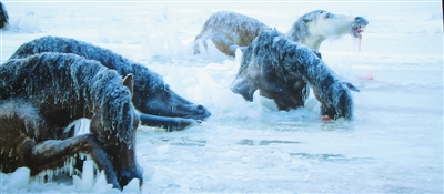 电影《狼图腾》里,群马落入冰湖被纷纷冻死的画面十分震撼,为推动电影情节做了渲染铺垫。肖进却说,冰湖里的“死马”实为“假马”。