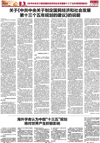 英国48家集团俱乐部主席斯蒂芬·佩里说,通过“十三五”规划,中国告诉世人今后努力的方向。这一规划现在也影响着世界。从英国角度讲,“十三五”规划也能确定中国未来对英国等国的态度和政策。
