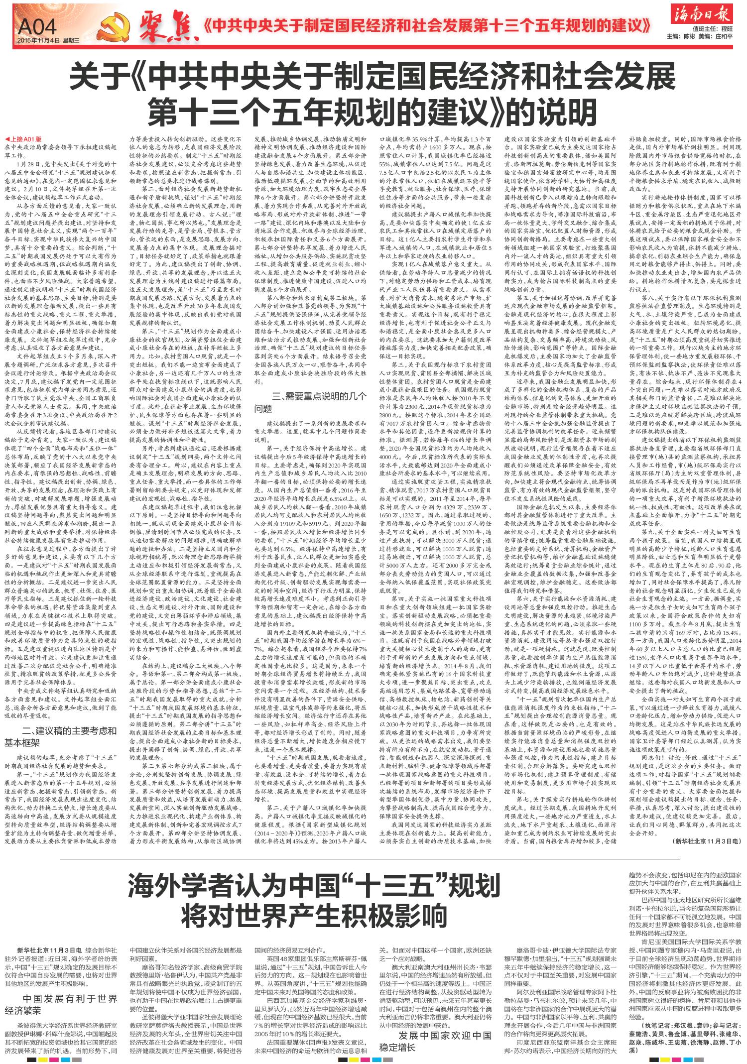 004 聚焦《中共中央关于制定国民经济和社会发展第十三个五年规划的建议》