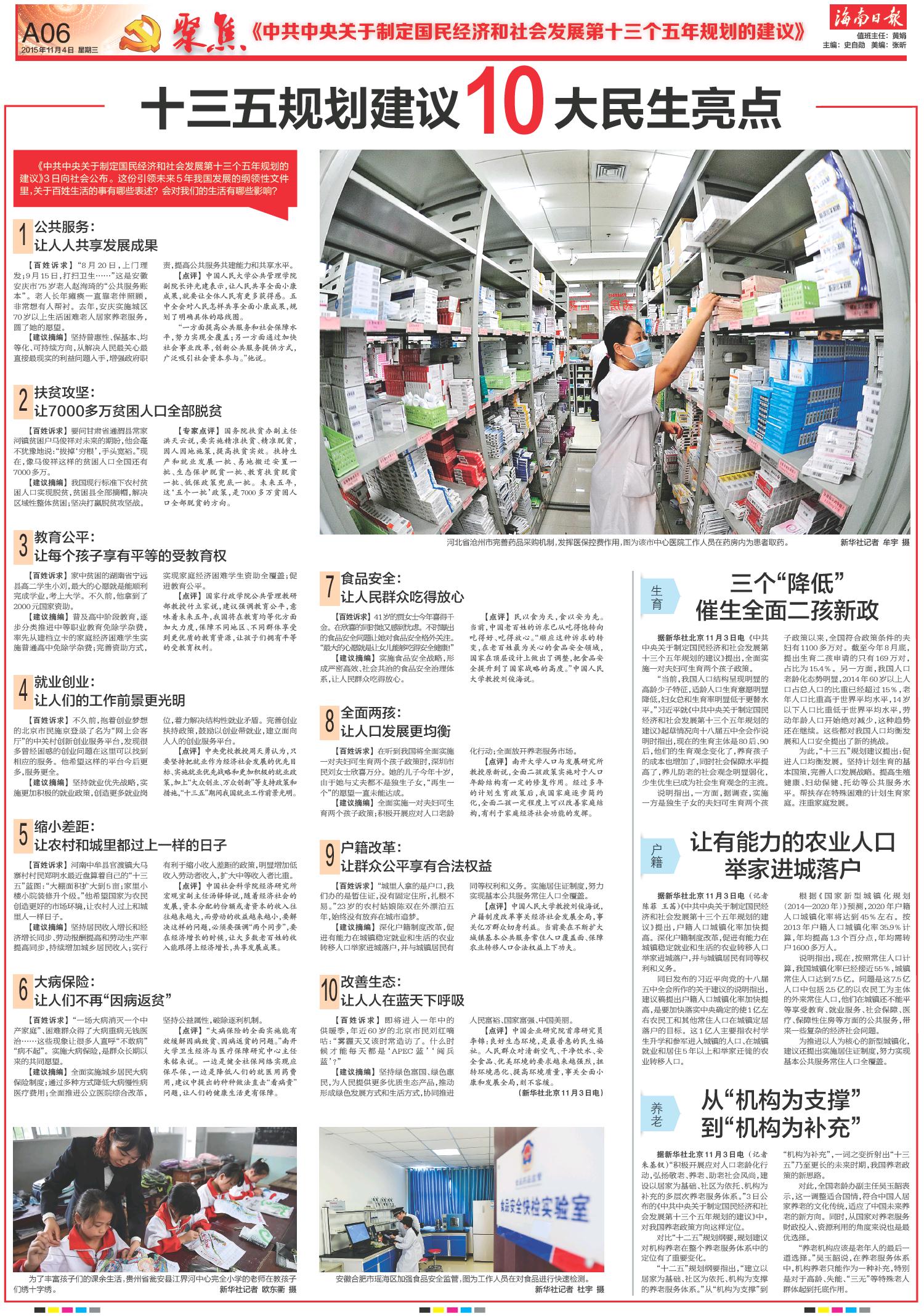 十三五规划建议10大民生亮点