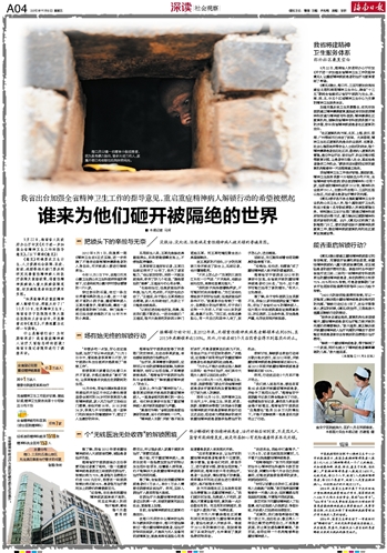 实际上,作为老“精神防治”人,像李某这样被关锁起来的重症精神病人,一直是徐锐和同事们的一块心病。他们早在调研中发现了重症精神病人被关锁的现象较为严重。