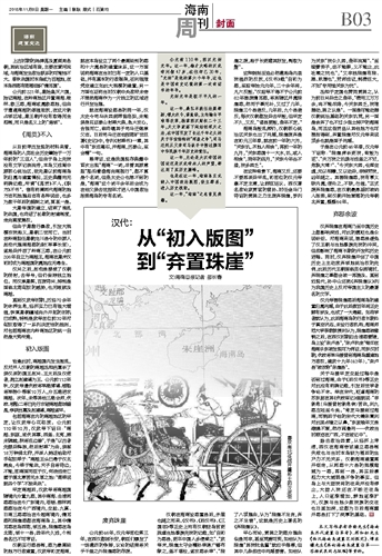 在这种背景下,海南又反,还要不要再派兵平乱,初即位的汉元帝拿不定主意,让群臣廷议。西汉著名政论家贾谊的曾孙、时任金马门待诏的贾捐之力主废弃珠崖,罗列了八项理由,认为“珠崖不足贪,弃之不足惜”,这就是历史上著名的《弃珠崖议》。