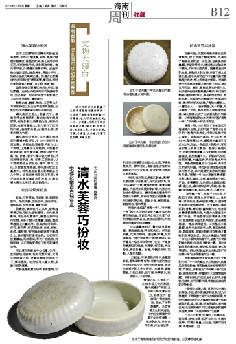 文\本刊特约撰稿 韩惠娇近日可移动文物普查于三亚市博物馆征集而来的一方出水于南海海域的粉盒,小巧精细,让人不忍细细把玩。小小一方粉盒,它揭示了许多深层的关系:瓷与美、女性与美、经济与文化、中国与世界。可谓,小身量,大内涵,可赏可玩可探,有趣至极。