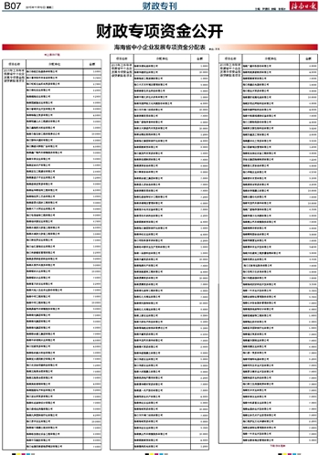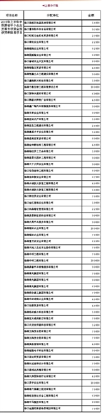 海南省中小企业发展专项资金分配表 单位: 万元