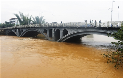11月16日,洪水从广西贺州市大桥下经过。 连日来,受冷空气南下影响,广西贺州市出现大到暴雨,局部大暴雨的强降雨过程。贺州市防汛抗旱总指挥部表示,这次强降雨来势迅猛,雨量集中,是有资料记载以来冬季最大的一次强降雨过程,导致全市7条河流中的6条超警戒水位,37座水库相继排洪,4376人紧急转移安置。 新华社记者 陆波岸 摄