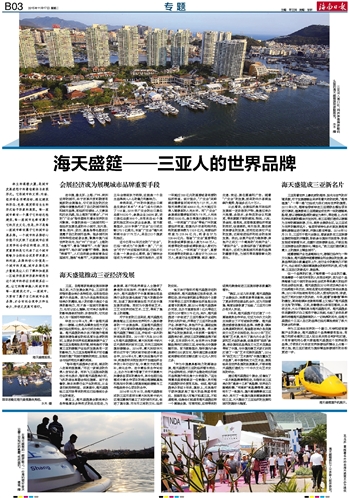 作为三亚走向世界的一个窗口,引导和培育游艇产业的展会,海天盛筵这个品牌需要有担当、有魄力和使命感的三亚人站出来共同去呵护和打造,只有珍惜和用心做大做强海天盛筵这个世界级的品牌,才使我们今后在世界旅游经济舞台上占据一席之地,把三亚打造成为国际精品旅游城市的目标更进一步。
