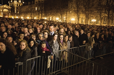 ⬆11月15日,民众聚集在法国巴黎圣母院外悼念恐怖袭击事件罹难者。 新华社记者 徐金泉 摄