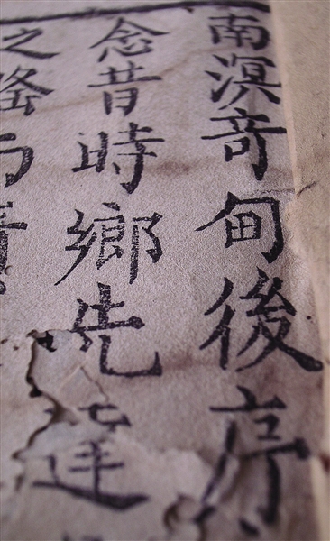 在海大图书馆记者看到,馆中所藏为明末崇祯年间特藏本,分为上中下3函共30册,蓝色布皮函,纸张有破损,有虫蛀、絮化,但字迹仍清晰。