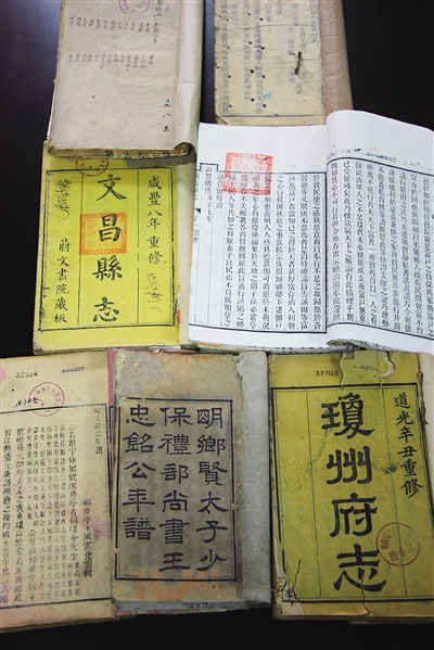 海南师范大学图书馆珍藏的部分海南古籍。 陈耿 摄