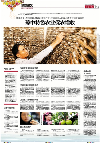 “我们重点扶持桑蚕、绿橙、养蜂、茶叶等新兴农业特色产业。” 琼中农业局局长赵文德告诉记者,琼中在继续实施橡胶、槟榔等大宗农产品单产提升基础上,开展特色农业产业“百村百社、千人万户”创业致富计划。大力发展林下经济,扶持农业规模生产经营,推进特色农业标准生产和质量体系认证,形成“一村一品、一乡一业”的农业产业发展新格局。