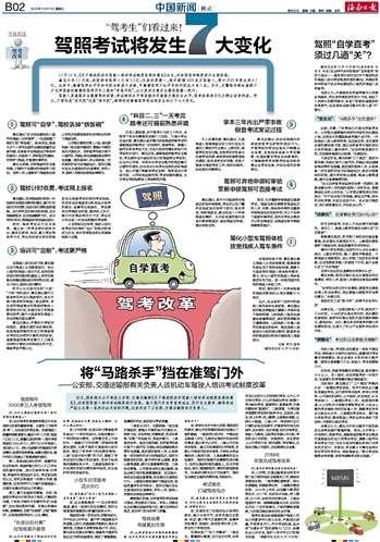 意见还提出,严格执行考试评判规定。道路交通安全法律法规、场地驾驶技能和安全文明驾驶常识考试应当使用计算机评判系统,道路驾驶技能考试推行人工随车评判和计算机评判相结合的方式,确保考试严格公正。