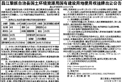 昌江黎族自治县国土环境资源局国有建设用地使用权挂牌出让公告