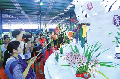 12月10日上午,第十届三亚国际热带兰花博览会在三亚兰花世界文化旅游区开幕。珍稀的兰花品种让观众不断举起手中的相机和手机,记录下这份难得一见的美丽。 本报记者 张杰 摄