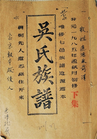 30年前续修的至德堂《吴氏族谱》,保留了大量的历史文献,后人借此不但可以窥见一个家族的简史,也能够知晓各个家族之间和同时代官宦之间的社会关系。 陈耿 摄