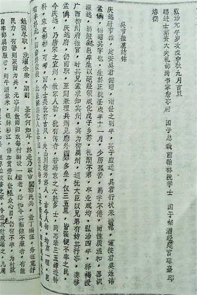 《吴氏族谱》中丘濬为吴孟俅妻子程氏撰写碑文的落款。 陈耿 摄