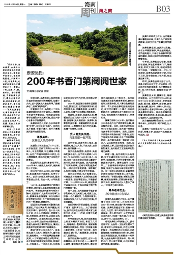 翻阅清代和民国多次续修和重修的定安“世德堂”《吴氏族谱》,方知这一家族在明代人才辈出,200年间以举人身份进入仕途者众多,贡生更是举不胜举,可谓科举世家,而广西宾州知州吴孟俅,只是其中的一位“有故事”的举人。