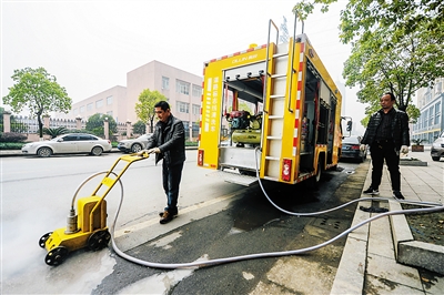 近日,拥有多项发明专利并入选“国家火炬计划项目”的高科技“道路标志线清洗车”在杭州问世,该车应用的“TK型超高压清洗设备技术”处于国内领先地位。 以往改画道路标志线,传统方法是用火熔、或用锤敲,机器打磨,效率低、污染大,又容易损伤原有路面。现在通过车载超高压水流清洗的方式,高压水流在每平方厘米的地面上产生约1500公斤的压力,喷射出的水变得像刀一样锋利,油漆斑马线很快就消失了。用新技术洗掉3米多的斑马线仅仅花了3分多钟,效率是传统方式的数十倍。