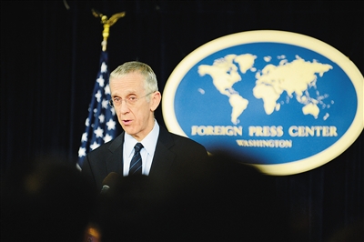 12月22日,在美国首都华盛顿,美国气候变化特使托德·斯特恩出席记者会。 美国气候变化特使托德·斯特恩22日否认在巴黎气候变化大会上出现的所谓“雄心联盟”有意孤立中国。 所谓“雄心联盟”,是指欧美等发达国家和部分发展中国家在巴黎气候变化大会最后关头建立的一个松散的、非正式的联盟,成员包括约100个国家,但不包括中国、印度等新兴大国。“雄心联盟”提出四大诉求,包括达成“有法律约束力”的《巴黎协定》,但该联盟成立前鲜为人知。 新华社记者 焦敏 摄