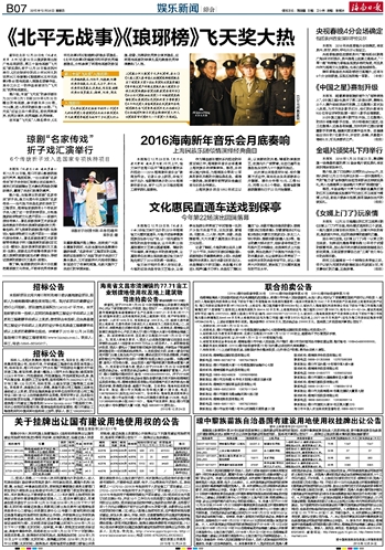 本报讯 (记者卫小林 通讯员潘心团)12月20日晚,海口市琼山影剧院里丝竹声声、唱腔悠扬,一出出琼剧“名家传戏”折子戏专场汇报演出在这里举行,演员们对琼剧舞台艺术最优秀选段的精彩演示,赢得了戏迷们热情的掌声。据介绍,当晚演出的琼剧“名家传戏”折子戏,是文化部今年实施的“名家传戏——当代地方戏曲名家收徒传艺”工程项目,海南省琼剧院有6个传统折子戏入选了这一专项扶持项目,分别是国家级非物质文化遗产项目——琼剧代表性传承人、著名琼剧表演艺术家梁家梁传授弟子符传杰表演的琼剧《张文秀·偷包袱》、林飞表演的琼剧《搜书院·诉身世》;省级非物质文化遗产项目——琼剧代表性传承人、著名琼剧表演艺术家李桂琴传授弟子林川媚表演的琼剧《百花公主·赠剑》、梁冰表演的琼剧《汉文皇后·生祭》;琼剧名丑符致椿传授弟子张昌义表演的琼剧《画龙点睛·降旨》、李硕征表演的琼剧《汉文皇后·弟难》。