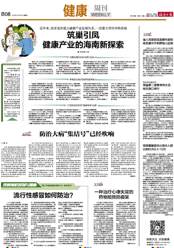 《海南省加快健康产业发展规划研究(2016年—2020年)》提出,将我省建成全国健康产业示范基地、国内一流的健康管理和养生休闲服务中心、国际先进的医疗专科服务中心,形成全国乃至全球独特的“健康海南”品牌。
