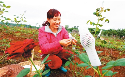 12月22日,在儋州市那大镇屋基村玫瑰庄园,工作人员正在将花蕾用花套套起来,以保证玫瑰花花期能够在即将到来的元旦、春节期间开放。