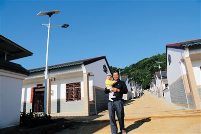 新修的水泥路把两边的新楼房一分为二,排排农家小楼在青山映衬下格外新颖,大力神、甘工鸟等民族元素为这个新改造的小山村平添了浓郁的民族风。富美乡村建设,使琼中黎族苗族自治县湾岭镇大边村面目一新,村民都住上了新房。
