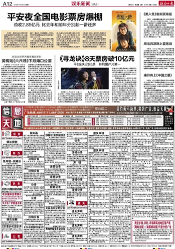 去年平安夜,票房最高的是《智取威虎山》,当天收5220万元;而2013年平安夜,票房最高的是《警察故事2013》,当天收6480万元,均无法与今年《恶棍天使》票房匹敌。(何小沁)