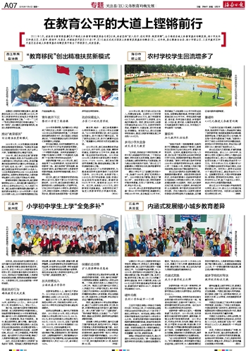 2011年3月,省政府与教育部签署《关于推进义务教育均衡发展备忘录》以来,我省坚持“投入先行、优化师资、制度保障”,全力推进县域义务教育基本均衡发展,海口市龙华区和美兰区、文昌市、琼海市、屯昌县、洋浦经济开发区6个县(市、区)已经正式成为国家义务教育发展基本均衡县(区)。近年来,昌江黎族自治县、海口市琼山区、三亚市崖州区和天涯区在县域义务教育基本均衡发展中做出了积极努力,成效显著。昌江黎族