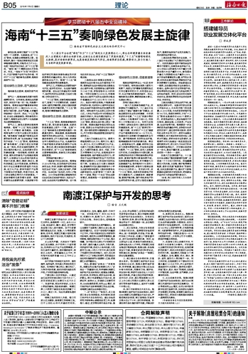 因此,要借助“多规合一”改革契机,把整治和合理开发南渡江列入“多规合一”的重要内容,科学编制《南渡江保护性开发总体规划》,破壁垒去藩篱,成立机构,科学规划;做好生态补偿,保护源头;制订河道管理及开发办法;退耕还林,保持水土;改造琼山龙塘拦河坝;出台投融资政策,利用ppp模式,进行保护性开发恢复南渡江的生态功能,将南渡江建成生态旅游示范江。