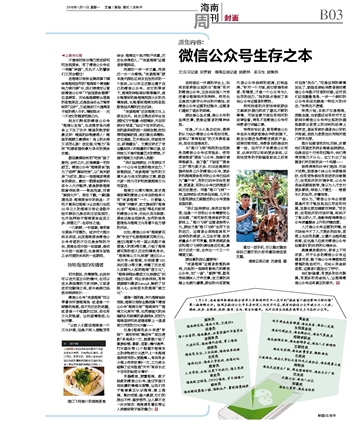 比如,微信公众号“海南黄花梨”专注于弘扬海南黄花梨文化,通过《海黄为何一直以来都不是普通人的菜》等文章,介绍了海南黄花梨的悠久历史和尊贵身份;“海南南山文化旅游”通过《从<芈月传>到海南,中间隔着100块沉香!》等文章,传播了历史悠久却鲜为人知的海南“香文化”;“海南槟榔谷黎苗文化旅游区”则通过《秘笈:何必东涂西抹,有种美颜酒叫黎家biang》,解析了甘甜入心、余味悠长的海南“酒文化”……