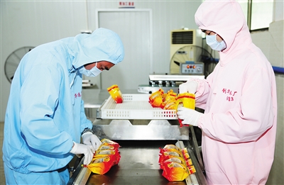 在儋州创华实业公司生产车间,工人们正在加工小包装红鱼干。 舒晓 摄