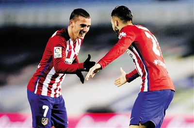 据新华社马德里1月10日电 (报道员谢宇智)西甲第19轮10日晚继续进行,马德里竞技在客场以2:0的比分战胜塞尔塔,在比巴萨多赛一轮的情况下,暂时位居榜首。马竞本轮客战塞尔塔。两队在上半时战成0:0。第49分钟,马竞在前场打出精妙配合,格列兹曼接到科克的传球,直塞维埃托,后者突至底线附近回敲,格列兹曼插上,小禁区线上将球捅入球门左角。第79分钟,客队再下一城,卡拉斯科前场带球一路突入禁区,晃开对方两名防守球员,劲射得手,为马竞锁定胜利。