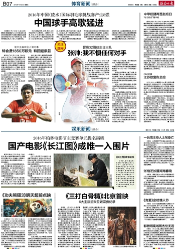 新华社柏林1月20日电 (记者郭洋)第66届柏林国际电影节主竞赛单元完整片单20日揭晓,中国影片《长江图》是入围主竞赛单元的唯一一部华语影片。《长江图》由中国导演杨超执导,秦昊、辛芷蕾主演,讲述发生在长江上的爱情故事。该片将在柏林电影节上举行全球首映。出生于1974年的导演杨超曾在2004年凭借长片电影处女作《旅程》获得第57届戛纳电影节金摄影机奖特别奖。