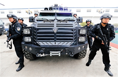 山西省太原市公安局特警支队配置的“剑齿虎”防暴装甲车。(图片来源:新华网)