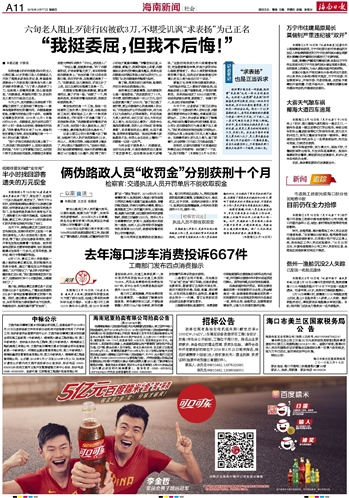 如同电影《求求你表扬我》中的主人公杨红旗,69岁的海口老人邓振奎这几天找了海南多家报社的记者,希望登报表扬他4个月前在海口新埠岛为救人被歹徒砍伤的事迹。“为了救人我被砍了3刀,但周围人却嘲笑我傻,我心里很委屈。”邓振奎说,希望相关部门认定他的见义勇为行为给自己正名。
