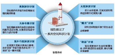 报告提出,至2030年,中国空间科学要在宇宙的形成和演化、系外行星和地外生命的探索、太阳系的形成和演化、超越现有基本物理理论的新物理规律、空间环境下的物质运动规律和生命活动规律等热点科学领域,通过系列科学卫星计划与任务以及“载人航天工程”相关科学计划,取得重大科学发展与创新突破,推动航天和相关高技术的跨越式发展。