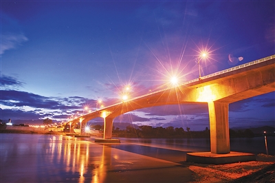 这是由中、老、泰三国共同建设,横跨湄公河连接泰国清孔和老挝会晒的清孔—会晒大桥的资料照片。 新华社发