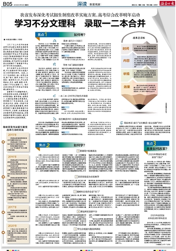 ■ 本报记者 郭景水 计思佳3月17日上午召开的海南省深化考试招生制度改革新闻发布会公布了《海南省深化考试招生制度改革实施方案》、《海南省普通高中学业水平考试实施办法》、《海南省普通高中学生综合素质评价实施办法》等一系列改革措施,其中备受关注的高考综合改革赋予了普通高中学生对于学习科目的选择权。