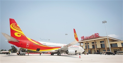 3月17日中午12时40分,由北京飞往博鳌的海南航空HU7777航班顺利降落在博鳌机场。 本报记者 宋国强 摄(相关报道见A03版)