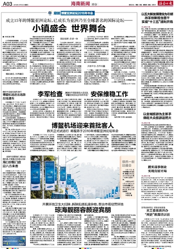 3月的海南春意融融。以“立足亚洲,面向世界,促进和深化本地区内和本地区与世界其他地区间的经济交流、协调与合作”为宗旨的博鳌亚洲论坛,即将迎来第十五届年会的召开。