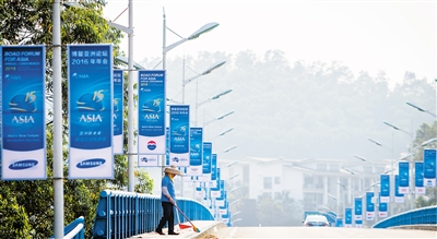 3月17日,在琼海博鳌东屿岛路旁,博鳌亚洲论坛2016年年会主题广告牌已更换一新。