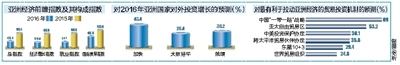 关于对外投资,43.4%的受访者认为,与2015年相比,2016年亚洲国家对外投资增长将“加快”,26.4%认为“大致持平”,有30.2%的受访者认为将“放缓”。调查结果表明,2016年亚洲国家对外投资将稳中有升。这是低迷的整体预期中的一大亮点。