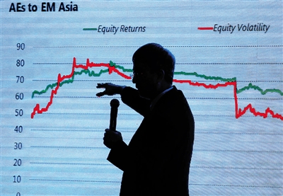 ⬇ 3月23日,年会分论坛上:2016亚洲经济预测暨前瞻指数发布。与会嘉宾在分析相关指标。本报记者 张杰 摄