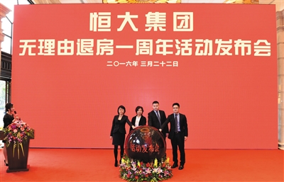 如果要问2016什么才是最为引人注目的事,那当属房地产无疑。从中央喊话,到各项新政落地,到一线房价飙升,再到二三线城市房价跟涨,房地产的每项动态都牵扯着无数人的眼光。而就在昨日,又一个重磅炸弹炸响地产圈,再度成为了人们热议焦点。据悉,3月22日恒大地产“无理由退房”一周年活动发布会正式召开,此次活动在广州及全国172个城市同步举行,可谓声势浩大。事实上恒大“无理由退房”政策,自面世之初就一直饱受关注。